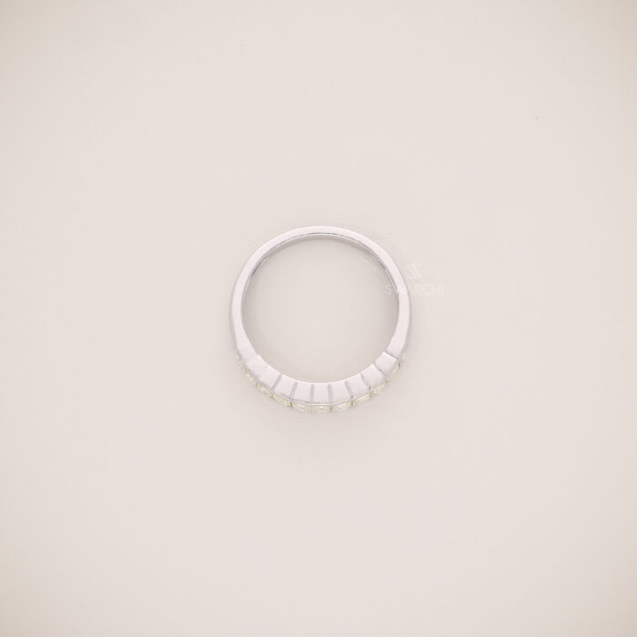 Its sleek profile allows comfortable daily wear while delivering luxurious sparkle, making it ideal as a wedding band, anniversary ring, stacking ring, or elegant everyday statement piece.