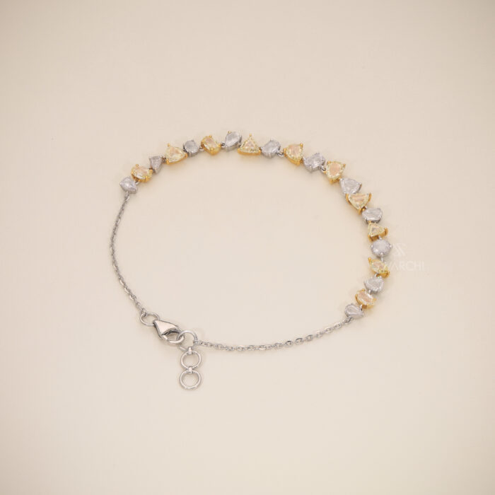 Finished with a Secure Clasp and an elegant Adjustable Chain Extension, the bracelet offers flexibility in fit while maintaining a clean and sophisticated look. The blend of Light pink & Yellow Diamond Tones makes it versatile for both everyday elegance and occasion wear.