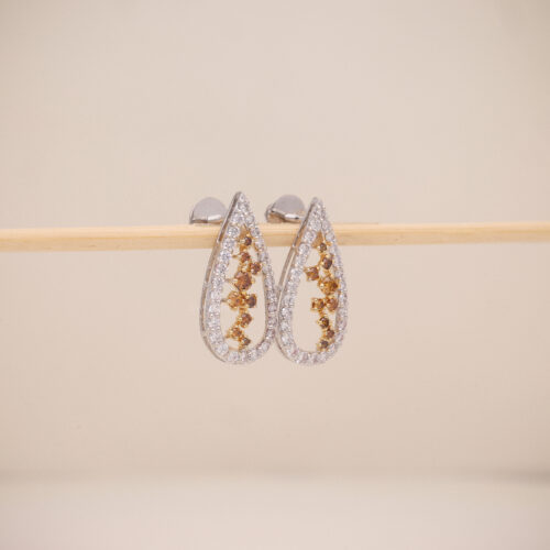 The Celestial Grace earrings are a mesmerizing blend of 18K gold, natural fancy-colored diamonds, and light pink diamonds, designed to radiate elegance and timeless beauty. The layered marquise-shaped elements create an ethereal flow, making these earrings a perfect statement of sophistication and charm.