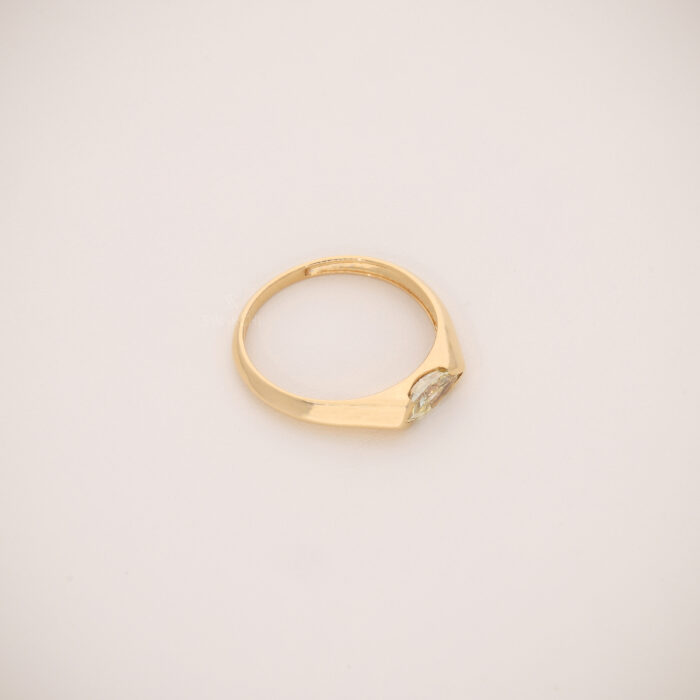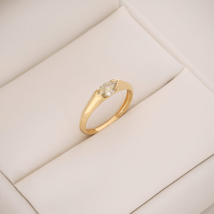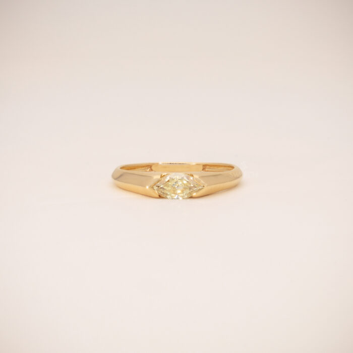 A sleek 18KT Yellow Gold solitaire ring featuring a marquise-cut natural diamond, set in a bold modern bezel-style design.