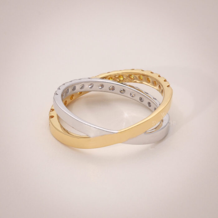Inspired by the Latin words Eterna (eternal) and Lux (light), the Eterna Lux Ring represents endless brilliance and enduring love. The interwoven gold bands gracefully cross over each other, forming an infinite loop, a symbol of infinity and connection.