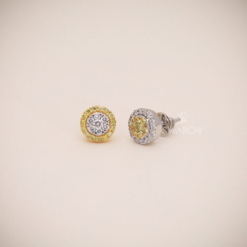 Exuding elegance and nature-inspired grace, the Golden Leaf Whispers earrings are a stunning fusion of 18K rose gold and natural fancy-colored diamonds. Designed in a flowing leaf motif, these earrings showcase a delicate interplay of intricate gold filigree and shimmering yellow diamonds, symbolizing the beauty of autumn’s golden hues.