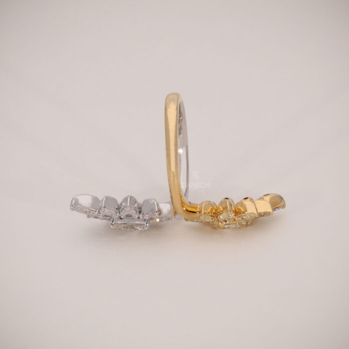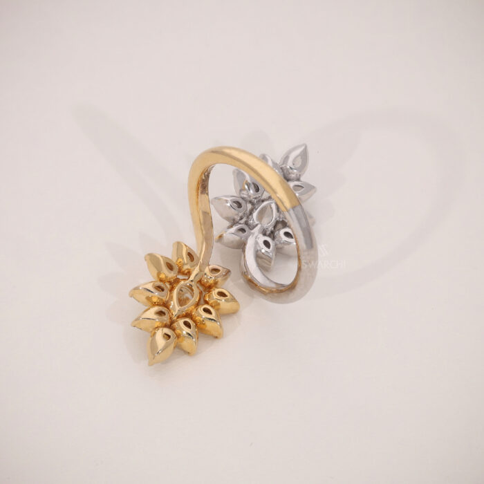 The MONACO FLORELLE Ring is a poetic interpretation of Nature-Inspired Luxury. Crafted in a harmonious blend of 18KT Yellow and White Gold, this ring features a sophisticated Toi et Moi-inspired bypass design that elegantly wraps around the finger.