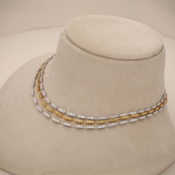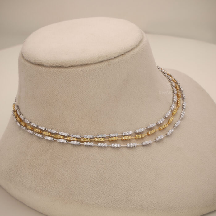 The articulated multi-strand construction ensures the necklace drapes with silky-smooth fluidity, providing a Comfortable Wear that follows the natural contours of the neck. The contrast between the cool white gold and the warm, sun-kissed yellow diamonds creates a high-impact two-tone harmony.