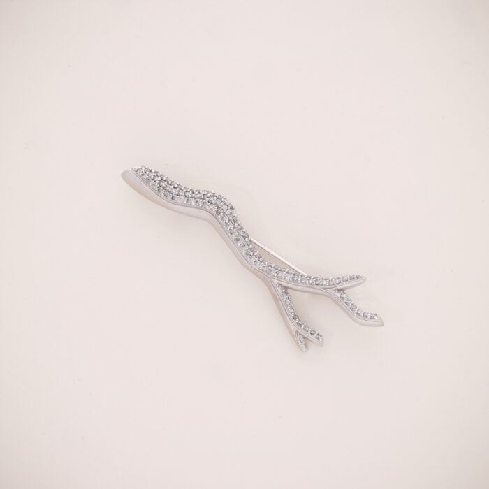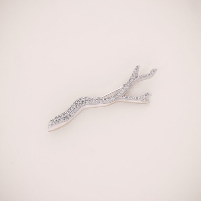 The Silva Élan Diamond Branch Brooch is a sophisticated expression of modern European artistry inspired by nature. Crafted in polished 18KT White Gold, this brooch features a flowing, organic branch-like form that reflects natural movement and understated luxury.