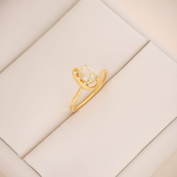 The Soléa Orbit Ring is a refined expression of Modern European Sophistication and artistic design. Crafted in polished 18KT Yellow Gold, this ring showcases a luminous Oval-Cut Natural Diamond, admired for its elongated shape and exceptional Fire & Brilliance.