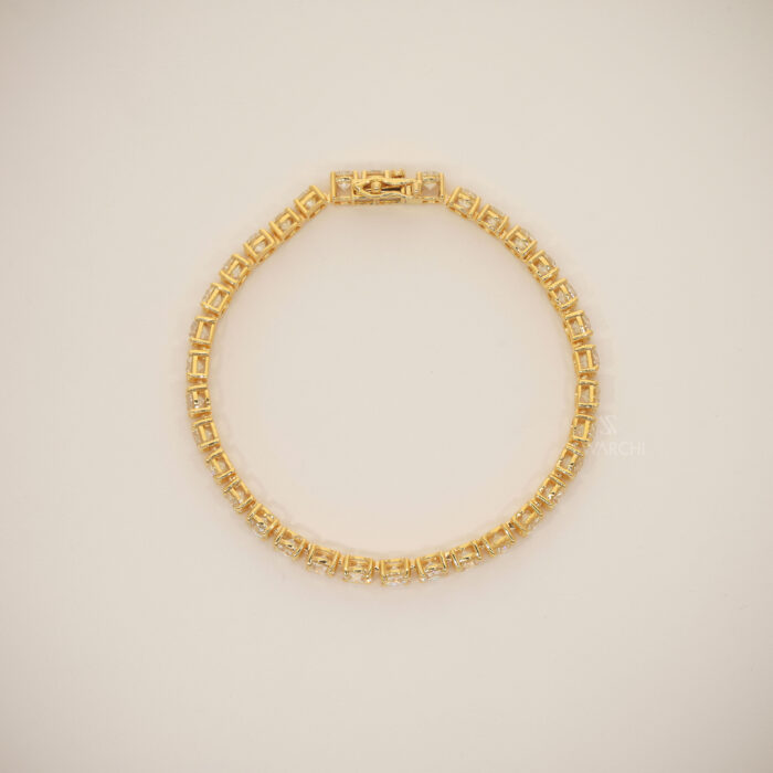 The ST. MORITZ RIVIÈRE Bracelet is a definitive piece of Classical European Elegance. Crafted in rich, high-polish 18KT Yellow Gold, this bracelet is the ultimate staple for any fine jewelry collection, designed to deliver maximum brilliance with a traditional touch.