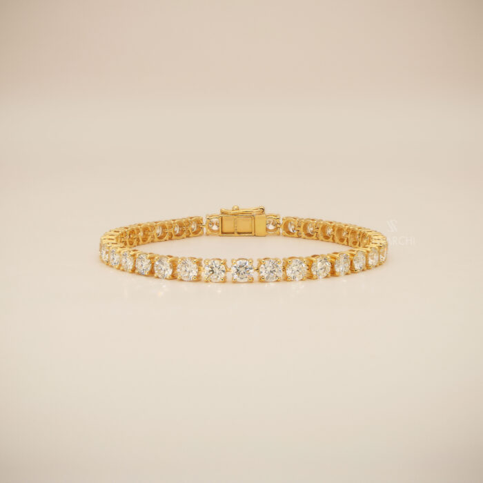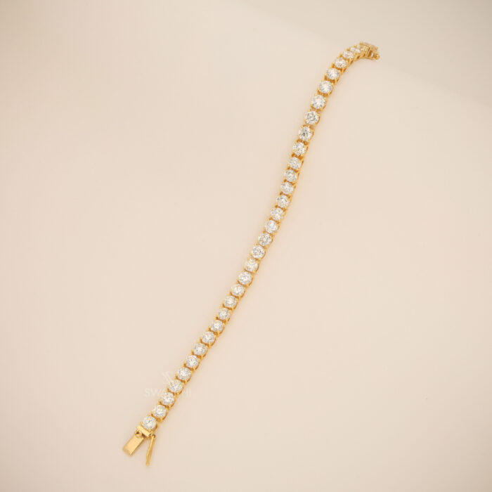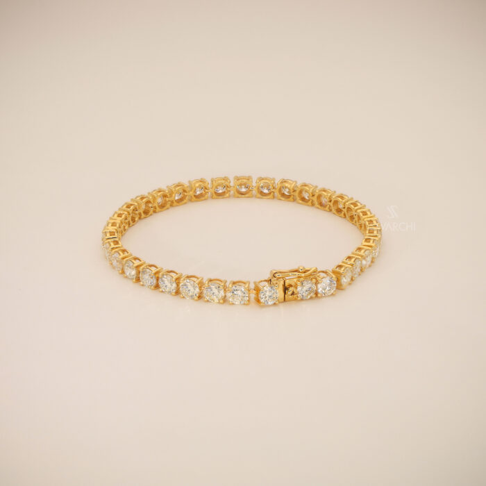 The articulated gold linkage is masterfully constructed to be both strong and flexible, allowing the bracelet to drape with a silky, soft-touch feel against the wrist for Comfortable Wear. The warm yellow gold setting provides a stunning contrast to the crisp, icy Yellow diamonds, creating a look that is both bold and sophisticated.